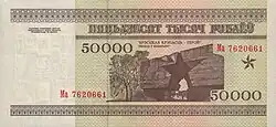 | 50.000 Rublos | Castillo de Mir en la Provincia de Goradnia | Azul | 74 x 150 mm |