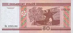 | 10 Rublos | Biblioteca Nacional de Bielorrusia | Violeta | 60 x 110 mm |
