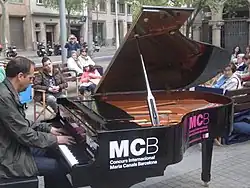 Pianista Actuando en Avinguda Diagonal, en 2015.