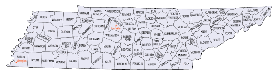 El Estado de Tennessee, en Estados Unidos, está dividido en 95 condados (counties).