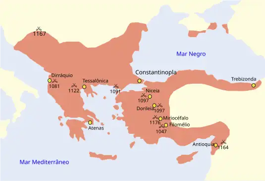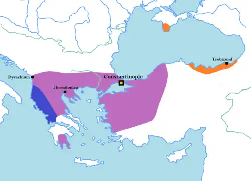 - ↑ Con territorios en el actual Provincia de Kırklareli, al oeste de Constantinopla.