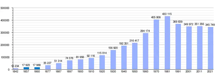 | Gráfica de evolución demográfica de Bilbao[1] entre 1842 y 2021 |