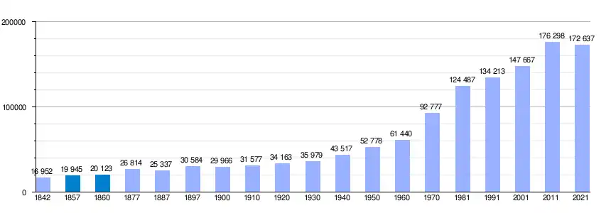Gráfica de evolución demográfica de Castellón de la Plana entre 1842 y 2021