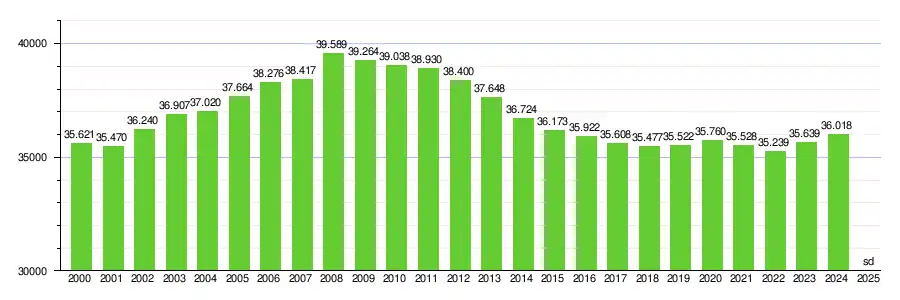 Tras una corta recesión en los años 1990, el siglo XXI comenzó con aumentos significativos de población especialmente por la llegada de población inmigrante. El desempleo provocado por la crisis de 2008-2016, hizo caer fuertemente el padrón tras una década de continuo crecimiento.