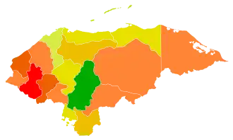 La siguiente lista presenta los departamentos de Honduras con su índice de desarrollo humano. Los datos son tomados de Global Data Lab,[1] cuyo más reciente registro es del año 2019, cuando el índice de desarrollo humano total del país fue de 0,600. sin embargo, en el año 2022 bajo a 0,621 por la pandemia del coronavirus.