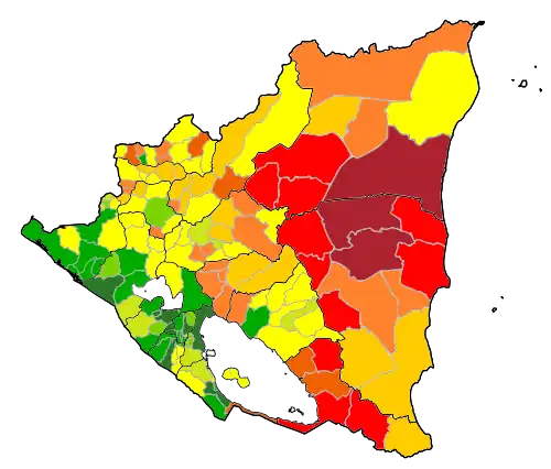 Índice de Desarrollo Humano de Nicaragua por Departamento. 0,750 - 0,799 0,700 - 0,749 0,670 - 0,699 0,620 - 0,670 0,600 - 0,619 0,550 - 0,569 0,500 - 0,549