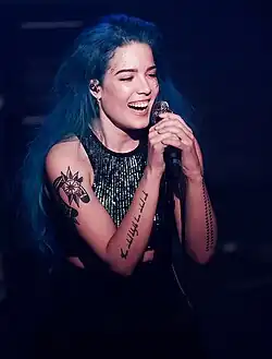 ![]() Halsey durante el primer show de su "American You(th) Tour en Los Ángeles. | ||