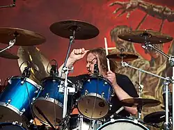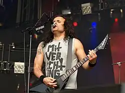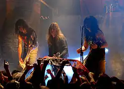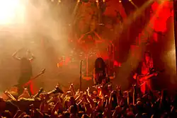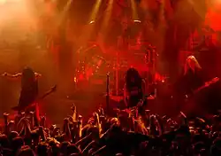 ![]() Kreator en directo, Cracovia, Polonia. de izq. a der. Christian Giesler, Sami Yli-Sirniö y Mille Petrozza | ||