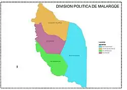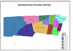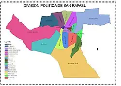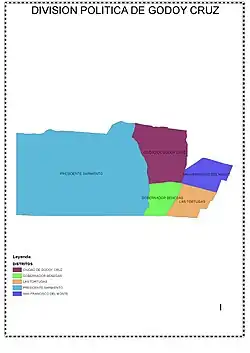 La provincia de Mendoza en la República Argentina divide su territorio en departamentos, a los cuales subdivide en distritos, llamados secciones en el departamento Capital.[1]