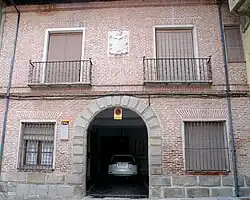 Fachada principal blasonada que originariamente daba acceso a un singular edificio dotado de patio porticado de dos plantas. (Esquinazo formado por la Calle San Martín y Ronda del Apóstol Santiago). Mayorazgo fundado por el regidor y caballero de la orden de Calatrava Francisco de la Torre en el siglo XVI.