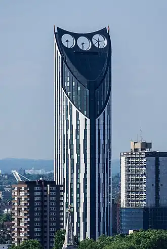 Residencial | 181 | 49 | 2013 | The crown of the building includes a small wind turbine which helps to generate power for the building.[17][18] |