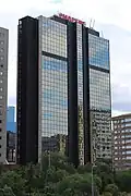 Proyecto más conocido del arquitecto Antonio Lamela.[43]​ Sobre la base o podio se alzan dos torres gemelas de color marrón anaranjado coronadas por dos copetes verdosos unidos por un remate con forma de enchufe del que cuelgan las escaleras de emergencia. Por diversos motivos las plantas fueron construidas en sentido inverso, es decir, «de arriba para abajo».[44][45]​ En 2020 se inició una remodelación integral del edificio, que comprendía la desmantelación de la estructura de la cima conocida popularmente como «enchufe». Las obras concluyeron en junio de 2024.[46]