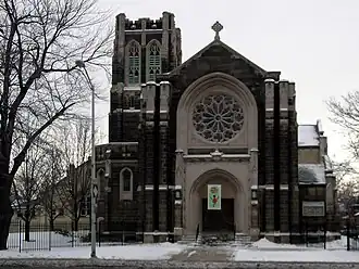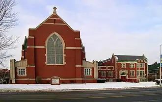 | La Iglesia Metodista Unida Central desde la Avenida Woodward. | ||