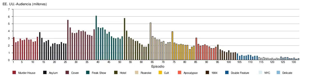 Para la séptima temporada, ver «American Horror Story: Cult (Season Seven) Ratings». TV Series Finale (en inglés). 17 de noviembre de 2017. Consultado el 26 de enero de 2019.