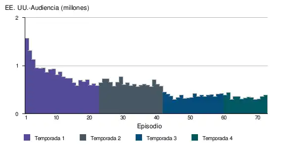 - ↑ Metcalf, Mitch (30 de marzo de 2020). «Updated: ShowBuzzDaily's Top 150 Friday Cable Originals & Network Finals: 3.27.2020». Showbuzz Daily (en inglés). Archivado desde el original el 31 de marzo de 2020. Consultado el 30 de marzo de 2020.