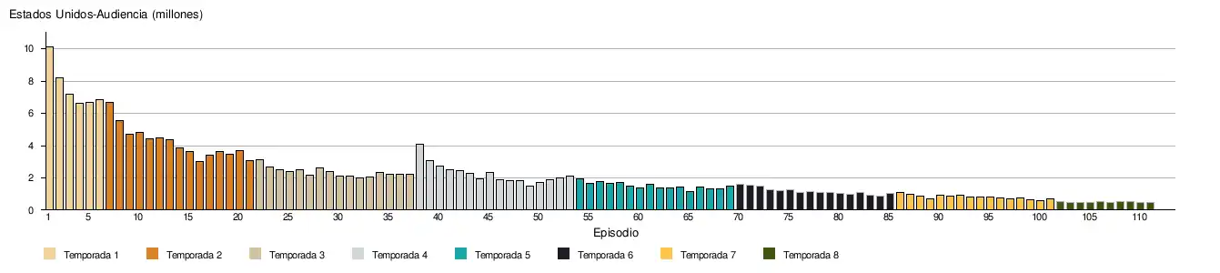- ↑ a b c d «Fear the Walking Dead: Season Eight Ratings». TV Series Finale (en inglés). 24 de octubre de 2023. Consultado el 25 de octubre de 2023.