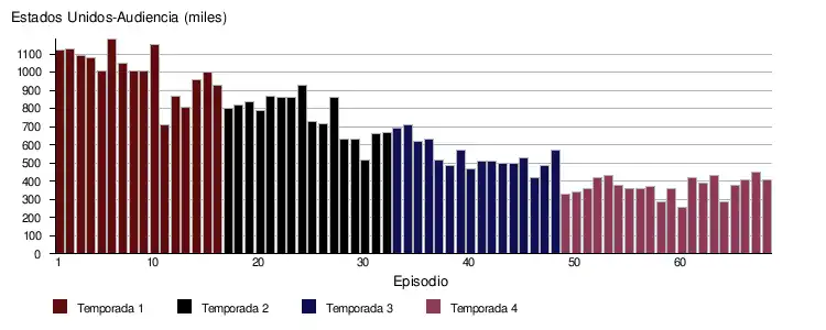 - ↑ Para la primera temporada, véase «Legacies: Season One Ratings». TV Series Finale (en inglés). 29 de marzo de 2019. Consultado el 11 de enero de 2021.