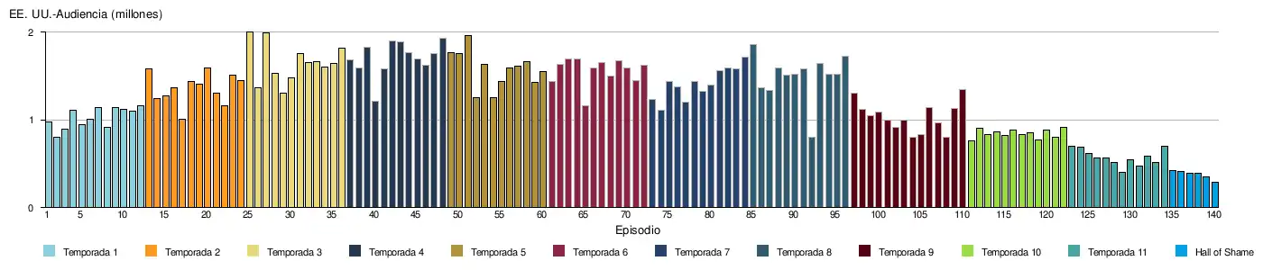 Para la décima temporada, ver «Shameless: Season 10 Ratings». TV Series Finale (en inglés). Consultado el 20 de noviembre de 2019.