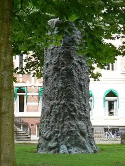 - ↑ ↑ La obra de Diertens consta de siete nidos de aves de bronce con las pertenencias personales de los residentes, incluyendo un coche de juguete, un anillo de un ser querido fallecido, un mechón de pelo. Los nidos colgando de los árboles en el jardín de los siete Hommes. El jardín de Hommes lleva el nombre del comerciante de té y café Hommes , que en el siglo XIX tuvo el mayor jardín de Groninga.