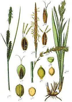 El género Carex es uno de los más grandes de los géneros de plantas con unas 1800 especies, según estimación de 2004.[ 1] Todas las especies, incluidas los híbridos aceptados por The Plant List se relacionan a continuación:[ 2]