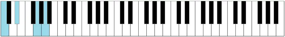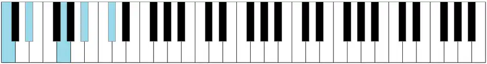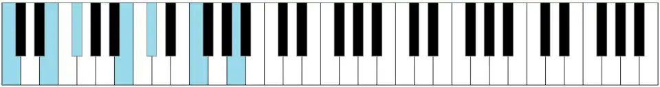 - Notas: do - mi - sol♭ - si - re♭ - fa - la (C - E - G♭ - B - D♭ - F - A).
