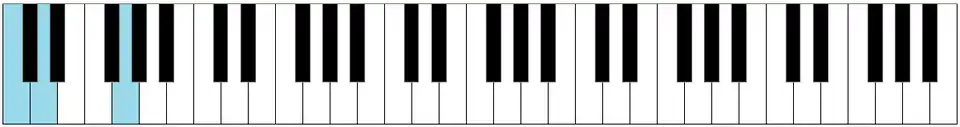 - Notas: re♭ - fa - la♭ - do♭ - mi♭ - sol♭ - si♭ (D♭ - F - A♭ - C♭ - E♭ - G♭ - B♭).