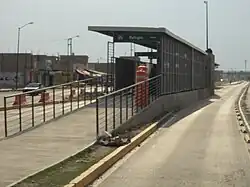 | Hospital (Hospital las Américas) | TR1, TR2, TR3 y TR4 | 1.º de Mayo | Aquiles Serdán | 2 de octubre de 2010 | Se ubica en Av. Central, toma su nombre de su cercanía con el hospital que se encuentra en el fraccionamiento Las Américas al oriente de la estación. Su símbolo representa una cruz, símbolo de los hospitales, con una H en el centro. | Línea 2A del Mexibús |