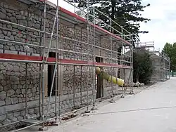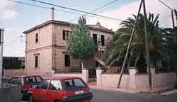 1917-1964 | Línea de Santañí | Ferrocarriles de Mallorca | Situada en el kilómetro 43,9 de línea ferroviaria entre Palma de Mallorca y Santañí, daba servicio a la población homónima de la comarca de Migjorn. El edificio, en buen estado de conservación debido a su reutilización como residencia privada, era idéntico al de la estación de Santa María. De todas las construcciones auxiliares de la estación, únicamente permanece en pie la lavandería, que puede verse disimulada tras una tapia desde la calle.[15] |