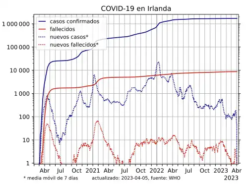 - ↑ «Epidemiology of COVID-19 in Ireland». epi-covid-19-hpscireland.hub.arcgis.com (en inglés). Consultado el 23 de junio de 2022.