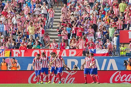 Datos actualizados al último partido jugado el 17 de agosto de 2025. No se tienen en cuenta los partidos amistosos. Estadísticas del palmarésSin incluir trofeos de carácter amistoso o regional, el club suma 33 títulos lo que le convierte en el cuarto club español más laureado a fecha de junio de 2019. De ellos, 25 son de carácter nacional y 8 de carácter internacional.[70][n 23] El Atlético de Madrid es el club con más títulos de la competición de Copa Presidente de la Federación Española de Fútbol (1). Cabe destacar sus resultados de los años 2010, 2012, 2018 y la temporada 1995-96 cuando consiguió dos de las competiciones que disputó para conquistar 2 títulos (Liga Europa y Supercopa de Europa en 2010, Liga Europa y Supercopa de Europa en 2012, Liga Europa y Supercopa de Europa en 2018 y Liga y Copa en 1995-96, siendo esta última la mejor temporada del club en su historia).[71] Es el único club en haber logrado proclamarse campeón del mundo de la Copa Intercontinental sin haberse proclamado antes máximo campeón continental al acudir al torneo como subcampeón por renuncia del campeón, el F. C. Bayern en 1974.[72] Notas