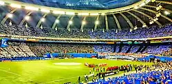Los estadios cuyos nombres están en celeste fueron construidos específicamente para partidos de fútbol.