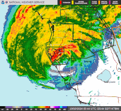 Vista Satelital del Huracán Milton8 al 11 de octubre: El huracán Milton toca tierra en Florida, donde 32 personas murieron y 3,4 millones se quedaron sin electricidad. Entre el 8 y el 9 de octubre, 44 tornados tocaron tierra en Florida, incluidos tres tornados de categoría EF3.