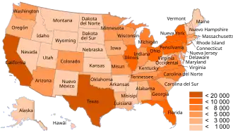 - ↑ a b c d e f Estimación provisional: los datos de Guam, Islas Vírgenes, Islas Marianas del Norte y Samoa Americana son aún estimaciones no publicadas directamente por el Censo (abril de 2021).