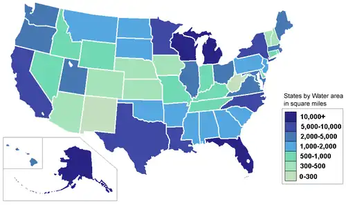 Esta es una lista de los estados de los Estados Unidos y sus principales territorios por superficie. Las cifras de superficies acuáticas incluyen aguas interiores y costeras, los Grandes Lagos y aguas territoriales. Los glaciares y las zonas acuáticas intermitentes se cuentan como superficie terrestre.[1]