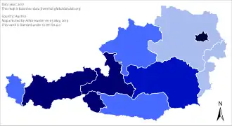 Clasificación de los estados federados de Austria por índice de desarrollo humano (datos del 2021).[1]