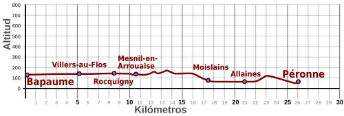La ruta abandona Bapaume en dirección sureste a través de caminos que discurren al este de la carretera D-917.[1] Continúa la presencia de cementerios militares ya que la comarca de Péronne fue escenario de importantes combates durante la I Guerra Mundial.[2]