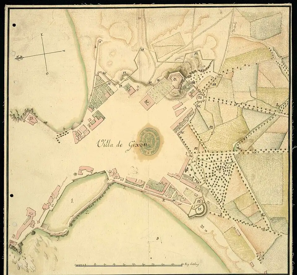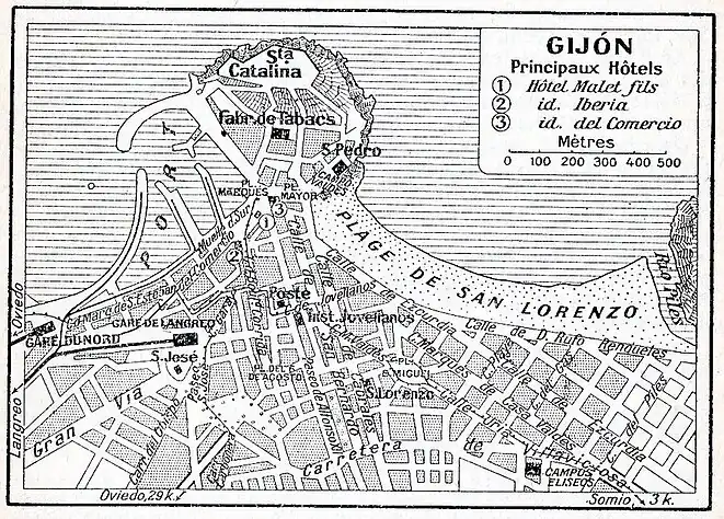 - ↑ Documentación, Instituto Geográfico Nacional-Servicio de (13 de enero de 2022). «Gijón (Asturias). Planos de población. 1910». Instituto Geográfico Nacional - Servicio de Documentación. Consultado el 18 de enero de 2023.