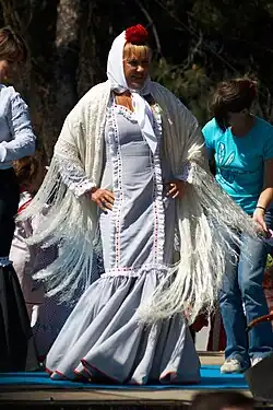 Barquillero en traje típico vendiendo barquillos un día de Fiesta.