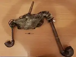 - 'Poluta es una cornamusa construida en 2013 y formada por dos bordones y un puntero. El fuelle está hecho de piel de vaca o de vinilo. Es muy popular para acompañar los cantos, danzas y coros regionales.