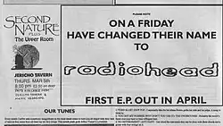 En 1991, cuando todos los miembros de la banda excepto Jonny Greenwood, habían completado sus estudios universitarios, On a Friday se reagrupó y la banda comenzó a grabar demos, entre ellos Manic Hedgehog y reanudaron sus presentaciones en los alrededores de Oxford. El 22 de julio de 1991 tuvo lugar el primer concierto con la formación reunida en The Holly Bush Inn de Oxford. A medida que On a Friday comenzó a dar más conciertos, varias discográficas empezaron a mostrar interés por la banda. Chris Hufford, productor de Slowdive y Bryce Edge, productor y copropietario de los Estudios Courtyard de Oxford, asistieron a uno de los primeros conciertos del grupo en la Taberna de Jericho. Impresionados por la banda, produjeron una demo y se convirtieron en sus mánagers;[4] de hecho, lo siguen siendo en la actualidad. Tras un encuentro casual entre Colin Greenwood y el representante de EMI, Keith Wozencroft en la tienda de discos donde trabajaba éste, el grupo firmó un contrato con la discográfica durante un lapso de seis álbumes.[4] A petición de la compañía, la banda cambió su nombre inspirándose en una canción de Talking Heads del álbum True Stories (1986) llamada «Radio Head».[4]