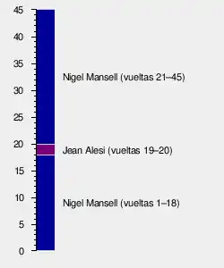 1 5 Bandera del Reino Unido Nigel Mansell Bandera del Reino Unido Williams-Renault 45 1:19:661 1 10