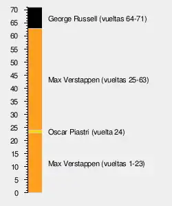 - Max Verstappen recibió 10 segundos a su tiempo final por causar una colisión con Lando Norris. Su posición no fue afectada.[16]