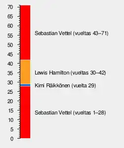 1 5 Bandera de Alemania Sebastian Vettel Bandera de Italia Ferrari 71 1:31:26.262 2 25