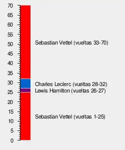 - ↑ Sebastian Vettel ganó la carrera en pista, pero fue penalizado con la suma de 5 segundos a su tiempo final por volver a la pista de manera insegura y forzar a otro piloto a salirse de la pista, por lo que perdió el primer lugar con Lewis Hamilton.[15][16]
