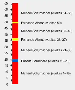 Michael Schumacher logró la victoria, seguido de Fernando Alonso y de Rubens Barrichello.