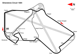 - ↑ www.formula1.com. «1994 British Grand Prix» (en inglés). Consultado el 10 de octubre de 2014.