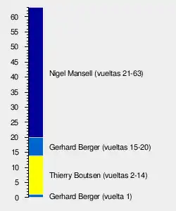 | 5 | 19 | Benetton-Ford | 61 | + 2 Vueltas | 6 | 2 | |