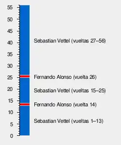 | 4 | 2 | Red Bull-Renault | 56 | +26.384 | 3 | 12 | |