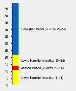 - La carrera fue acortada a 59 vueltas debido al límite de 2 horas.