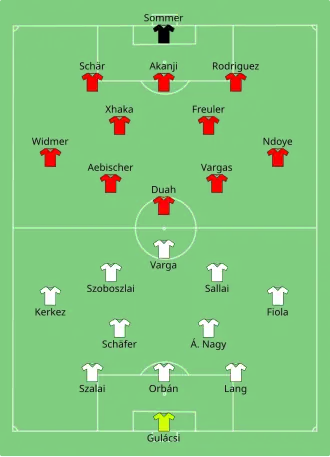 | Dominik Szoboszlai se convirtió en el jugador más joven (23 años y 243 días) en capitanear un encuentro de un equipo en la historia de la Eurocopa superando a Giuseppe Bergomi (24 años y 171 días).[5] | ||||||